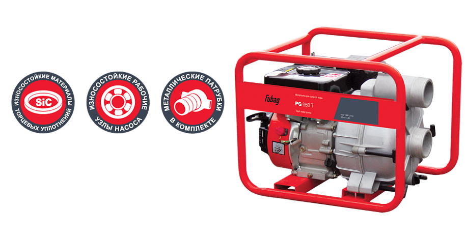 Мотопомпа для сильнозагрязненной воды FUBAG PG 950T в продаже по цене 0 руб. в Интернет-магазине Проф-инструмент с доставкой в Ижевске и Удмуртии. Звоните по телефону +8 (800) 302-10-51.
