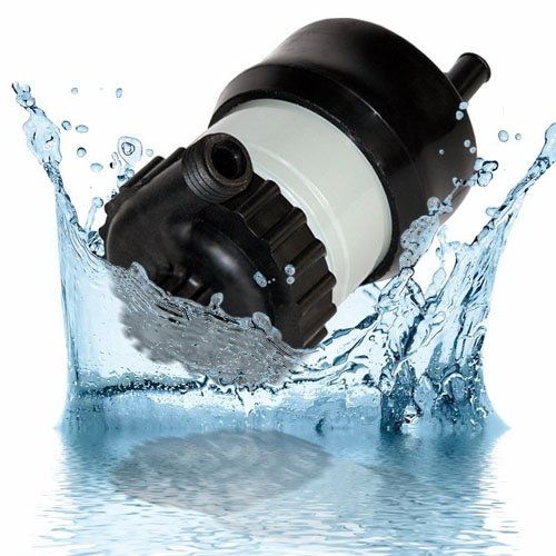 Для забора воды подвесьте насос в водоеме. Всасывающую полость диффузора опустите в воду настолько, чтобы щелевидные отверстия были погружены на глубину 5-7см. При работающем на холостых оборотах двигателей, подключите клеммы провода питания к клеммам аккумулятора (полярность подключения безразлична). Установите такие минимальные обороты двигателя, при которых производите подзарядку аккумулятора и приступайте к работе.