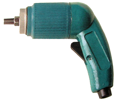 При нажатии на курок, сжатый воздух через отверстие в буксе и рукоятке поступает в рабочую камеру двигателя, давит на лопатки и приводит во вращение ротор. Вращение ротора через шестерни планетарного редуктора передается к шпинделю, на котором крепится сверлильный патрон.