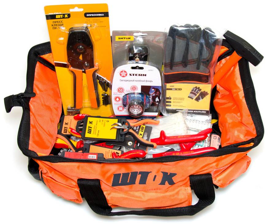 - Стандартный набор электрика, необходимый минимум для проведения электротехнических работ под напряжением до 1000В.